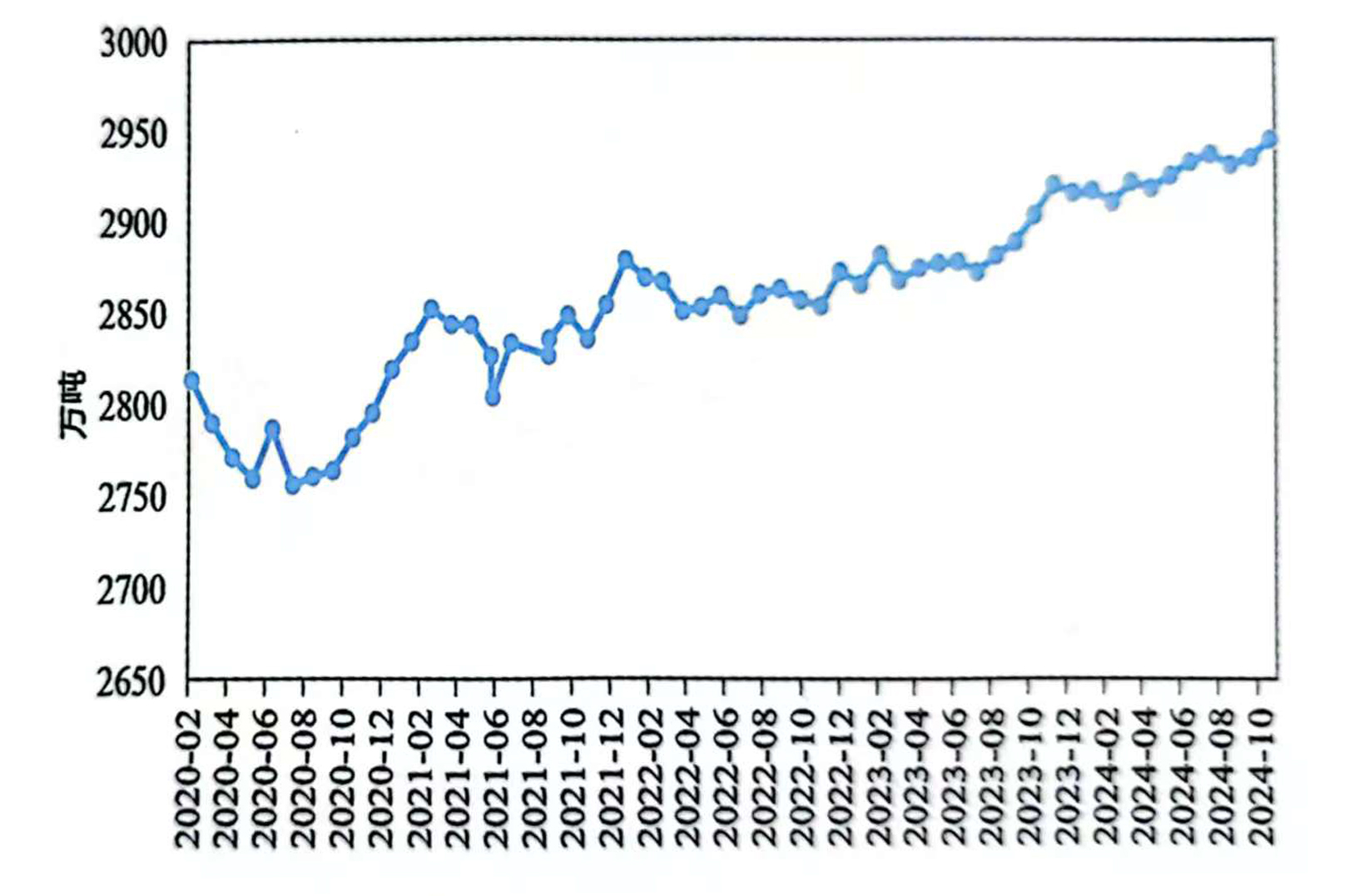2024年11月,中國電解鋁企業(yè)增減產(chǎn)并存。減產(chǎn)方面,河南、廣西、貴州、四川等地區(qū)的部分鋁廠由于環(huán)保、生產(chǎn)經(jīng)營(yíng)壓力大等因素而宣布檢修、停槽或放緩復(fù)產(chǎn)計(jì)劃:新投方面,11月初貴州地區(qū)雙元鋁業(yè)二期項(xiàng)目鋁水下線,預(yù)計(jì)12月底全部投產(chǎn),新疆信發(fā)、寧夏寧創(chuàng)也在持續(xù)投產(chǎn)中。11月國內(nèi)電解鋁建成產(chǎn)能4462萬噸/年,運(yùn)行產(chǎn)能4374萬噸/年,較上月增長(zhǎng)11萬噸/年。11月份產(chǎn)量為360.6萬噸,環(huán)比下降3.4%,同比增長(zhǎng)4.5%,日均產(chǎn)量12.02萬噸,環(huán)比小幅下降0.2%。